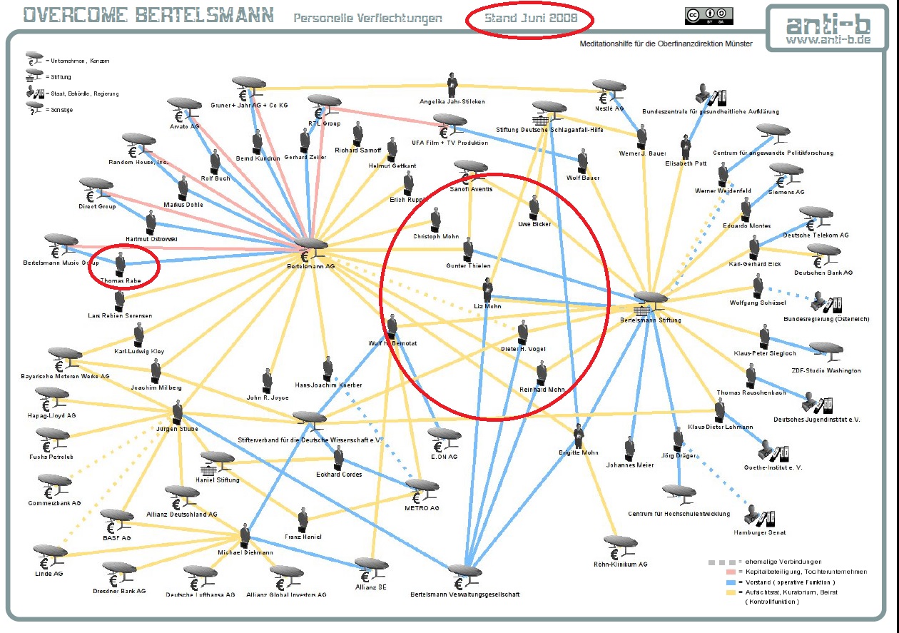 Nun kommt es nicht von ungefähr, dass sich Bertelsmann mit der neuen Unternehmenskommunikation erst ab 2003 mittels einer verschleppenden Primär-Prüfung durch das „gutwillige“ IfZ Institut für Zeitgeschichte München prüfen lassen will und man nichts von den eigentlichen Inhabern und Gesellschaftern hört. Bis 2003 bestimmten nämlich Thomas Middelhoff und die belgische Gruppe Bruxelles Lambert (GBL) von Baron Alberte Fréré mit einem Besitzanteil von 25,1 % als Mitinhaber von Bertelsmann das dortige Geschehen unternehmerisch mit. Der Notverkauf von Middelhoffs AOL spülte vor dessen Entlassung freilich jede Menge Kohle in das Bertelsmann-Sparschwein, sodass dem Schlitzohr Middelhoff von den 7,5 Mrd. Euro sogar noch eine kleine Abfindung von 25 Mio. Euro mitgegeben werden konnte. Die Realität und die Motive sind ganz einfach zu verstehen – nur sie dürfen nicht und so nicht bekannt werden. Dass Reinhard Mohn auch mal ein überzeugter SA-Mann war und ausreichend entnazifiziert wurde, mag stimmen oder auch nicht stimmen und steht nicht mehr zur Debatte. Dass es daraus warmherzige Neigungen etwa zu Nannen gab, mag stimmen oder auch nicht. Dass Mohn/Bertelsmann das deutsche Volk mit seinen Clubs letztlich auch teilweise ein kriminelles Bildungsdiktat erzwungen hat und damit viel Geld verdiente, ist kaum bestreitbar. Dass er damit aber auch Kultur und fundiertes lexikalisches Wissen mit oft unerwünschter Macht verbreitete, dürfen sich aber die Namen als „Volksbildner“ ebenfalls zurechnen lassen. Vergleichbar ackerte auch Holtzbrink mit dem Deutschen Bücherbund und baute sich daraus u.a. sein Handelsblatt-Imperium.